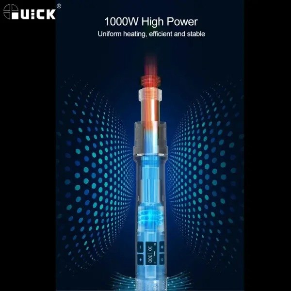 Despite its professional power, the TR1 remains impressively compact and lightweight. Its portable design makes it the perfect choice for field technicians, mobile repair service providers, and anyone who needs a reliable hot air tool on the go. Unlike bulky traditional rework stations, the QUICK TR1 can easily be transported in a toolkit or backpack without sacrificing performance. Its ergonomic grip and balanced weight distribution ensure long hours of fatigue-free use.