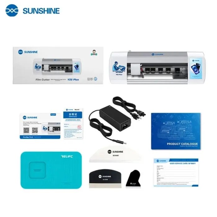 The SUNSHINE Y25+ 16-Inch Film Cutting Machine is a next-generation film cutter designed to meet the demands of modern mobile protection businesses. It allows users to cut protective films for smartphones, tablets, smartwatches, and other devices with extreme precision.
