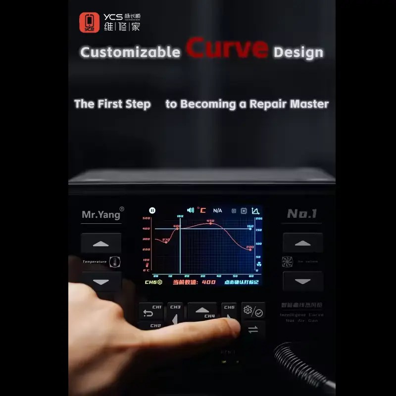 The YCS Mr. Yang No.1 Smart Soldering Station is a powerful and intelligent solution for advanced electronics repair. With its innovative curve hot air technology, precise temperature control, and smart system, it delivers exceptional performance for CPU, IC, BGA, and SMD rework.
